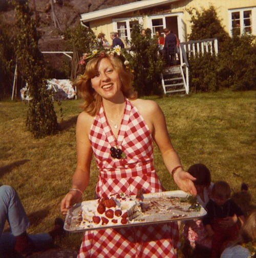Här tillbringade jag alla mina somrar från det jag var fem år och i ett halvt århundrade! Föddes en midsommarafton på fyrtiotalet bland blåklint, prästkragar och klöver! Inte konstigt då att jag blev ett obotligt romantiskt barn och att många av mina målningar handlar just om detta: Dans runt midsommarstången och jordgubbstårtor. Ty det var så jag blev firad under alla år. Mina tre bröder och jag lärde oss från tidig ålder att segla över sundet och hämta mjölken i en plåtspann hos bondgården snett emot. Smällande segel, och båtar på det blåa Havet!