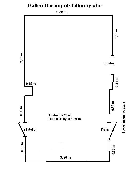 På bilden till höger ser du en skiss över galleriets väggytor, som kan vara till hjälp så du ser vad som får plats att hängas.
